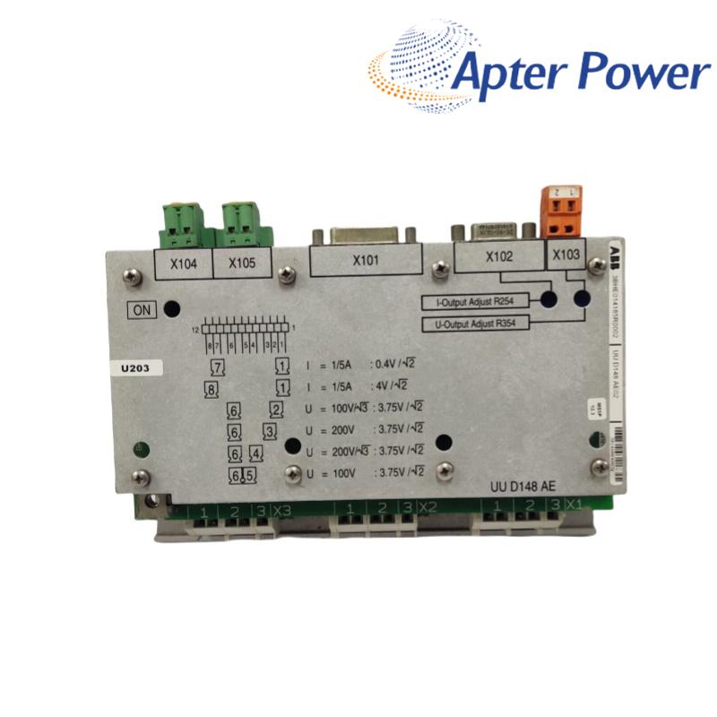 Model: 3BHE014185R0001 / UUD148AE01 Type: Voltage Transducer Control Board Input Voltage Range: 0–10V, 0–20mA Resolution: 12-bit, 16-bit Accuracy: ±0.1%, ±0.5% Sampling Rate: 1000 samples/second Output: Digital signal for integration with control systems Isolation: Electrical isolation between transducer and control system |